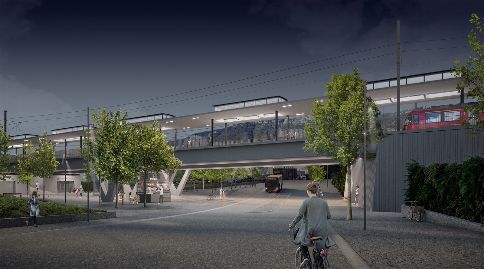 Traffic public, vias da transit tras ils lieus e rait da vias da velo en il focus