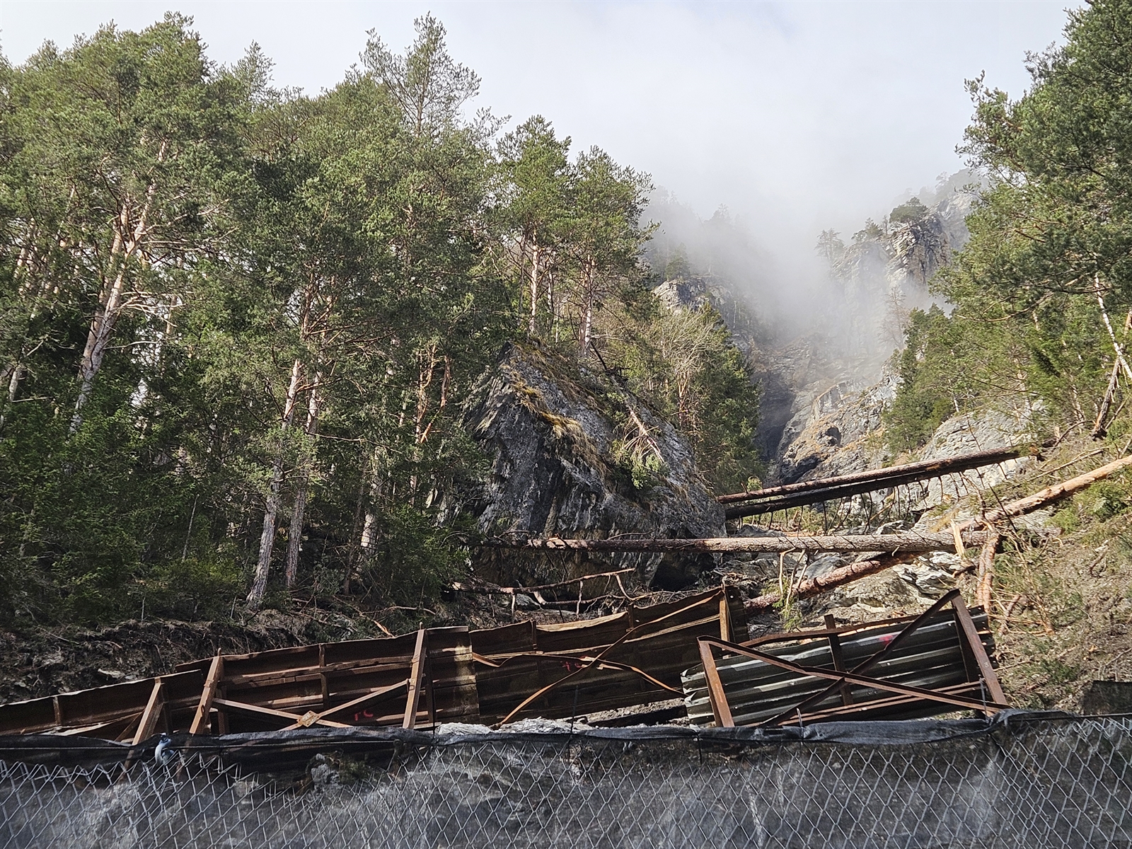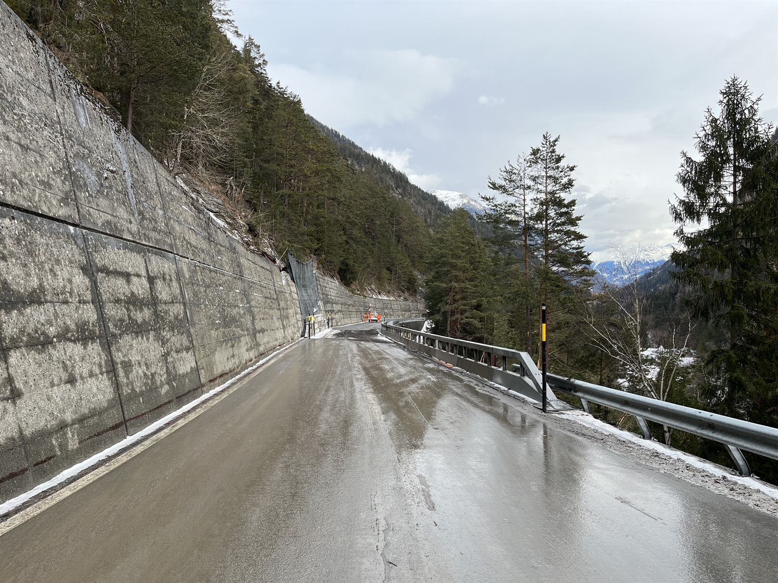Avant ch'igl è pussaivel da cumenzar cun las lavurs da reparaziun, disfa l'Uffizi da construcziun bassa dal Grischun (UCB) in imposant bloc grond da circa 1500 meters cubic ch'è labil, quai per garantir la segirezza dals lavurants sin via. Quest bloc sa chatta var 40 meters sur la via d'Engiadina. Tras la crudada da grippa dals 23 da december 2023 è el per part vegnì a la surfatscha.